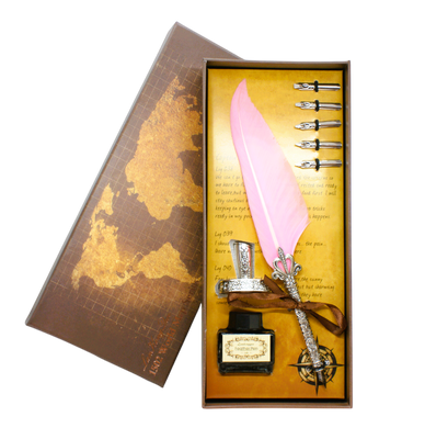 Fjäderpenna / Kalligrafipenna - Set i vacker box med rosett