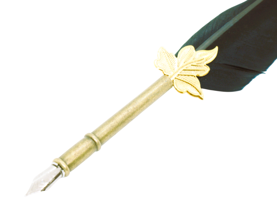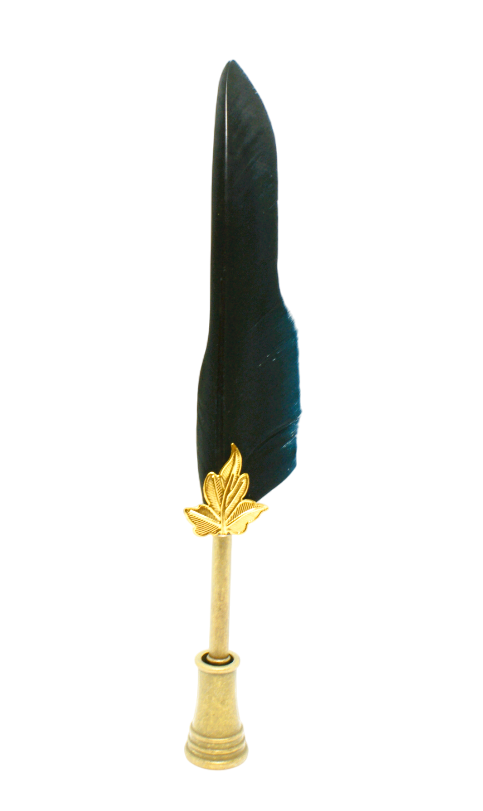 Vacker svart fjäderpenna och kalligrafipenna med mässingfärgat stål