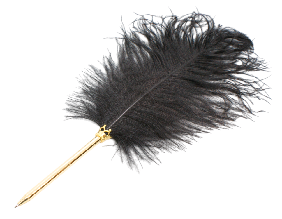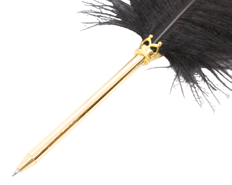 Här är en fin kulspetspenna med en vacker svart fjäder. Pennan är i en blank guldfärg och bläcket i pennan är svart.