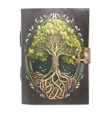 Handgjord läderbok med Livets Träd / Yggdrasil