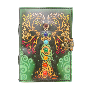 Handgjord Läderbok - Gudinna med chakra stenar