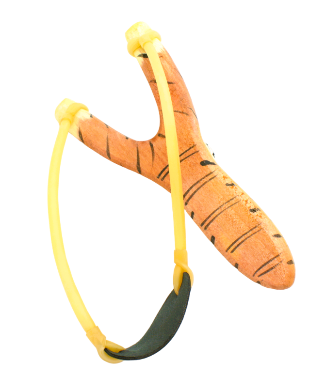 Handgjord slangbella i trä med en tiger.
