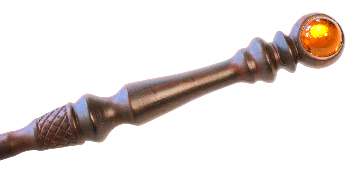 Denna lite kortare stav är brun och har ett draköga i skaftet. Staven levereras i en fin ask