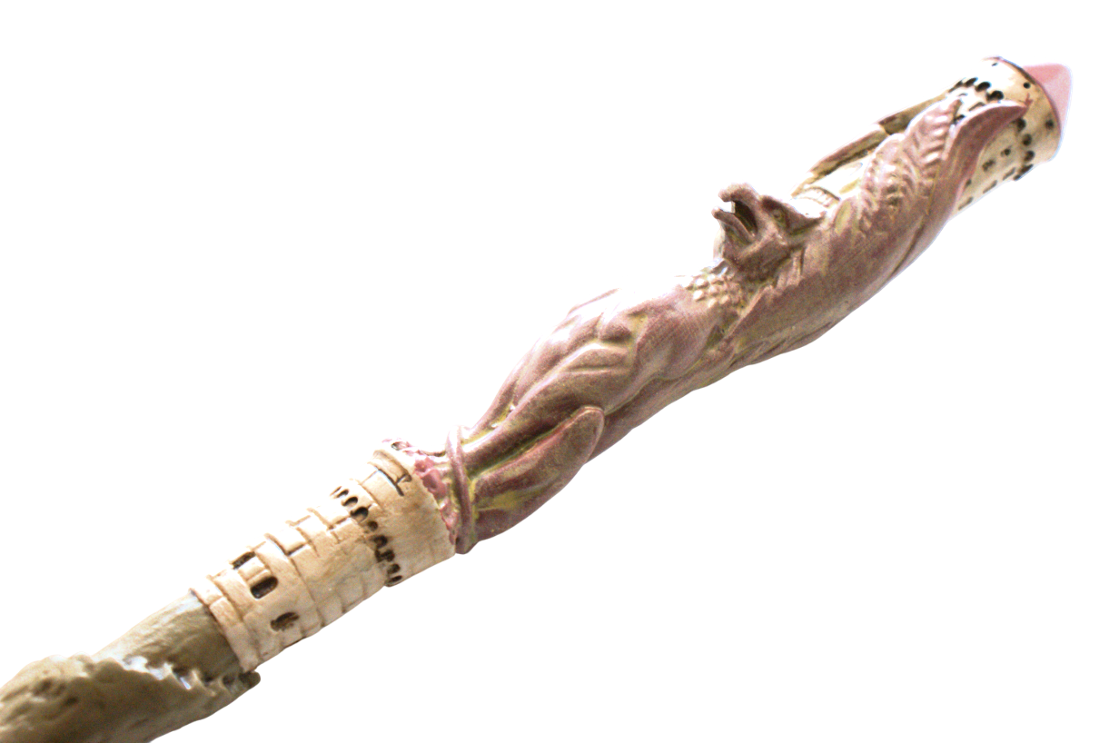 Staven är handmålad och tillverkad i PVC. I alla stavarna finns en metallstång för att ge den tyngd, hållbarhet och en känsla av att hålla i en riktig trollstav